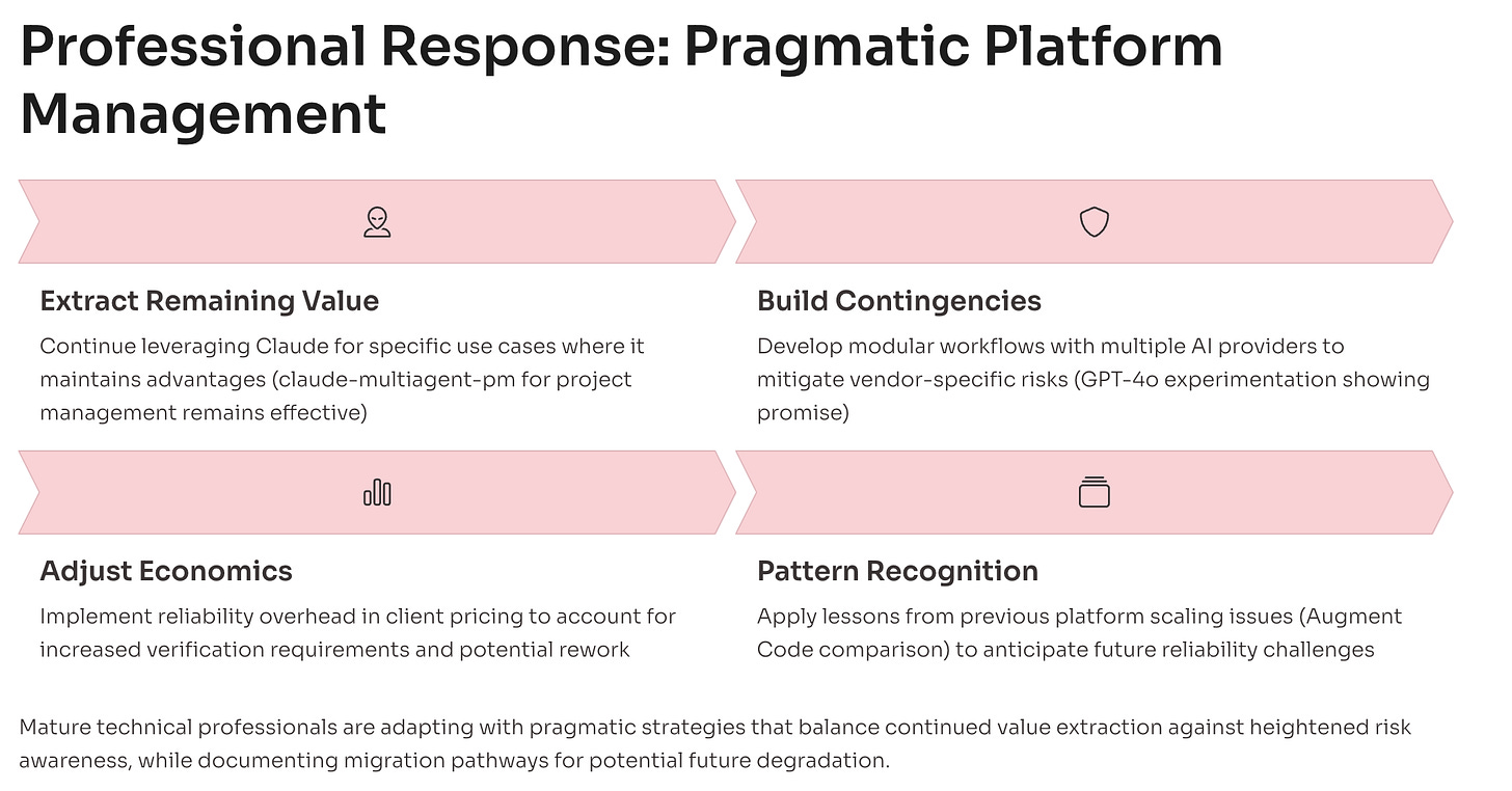 Related reading: Claude's Growing Pains: When the Best AI Coding Tool Can't Stay Online for technical analysis of Anthropic's infrastructure challenges
