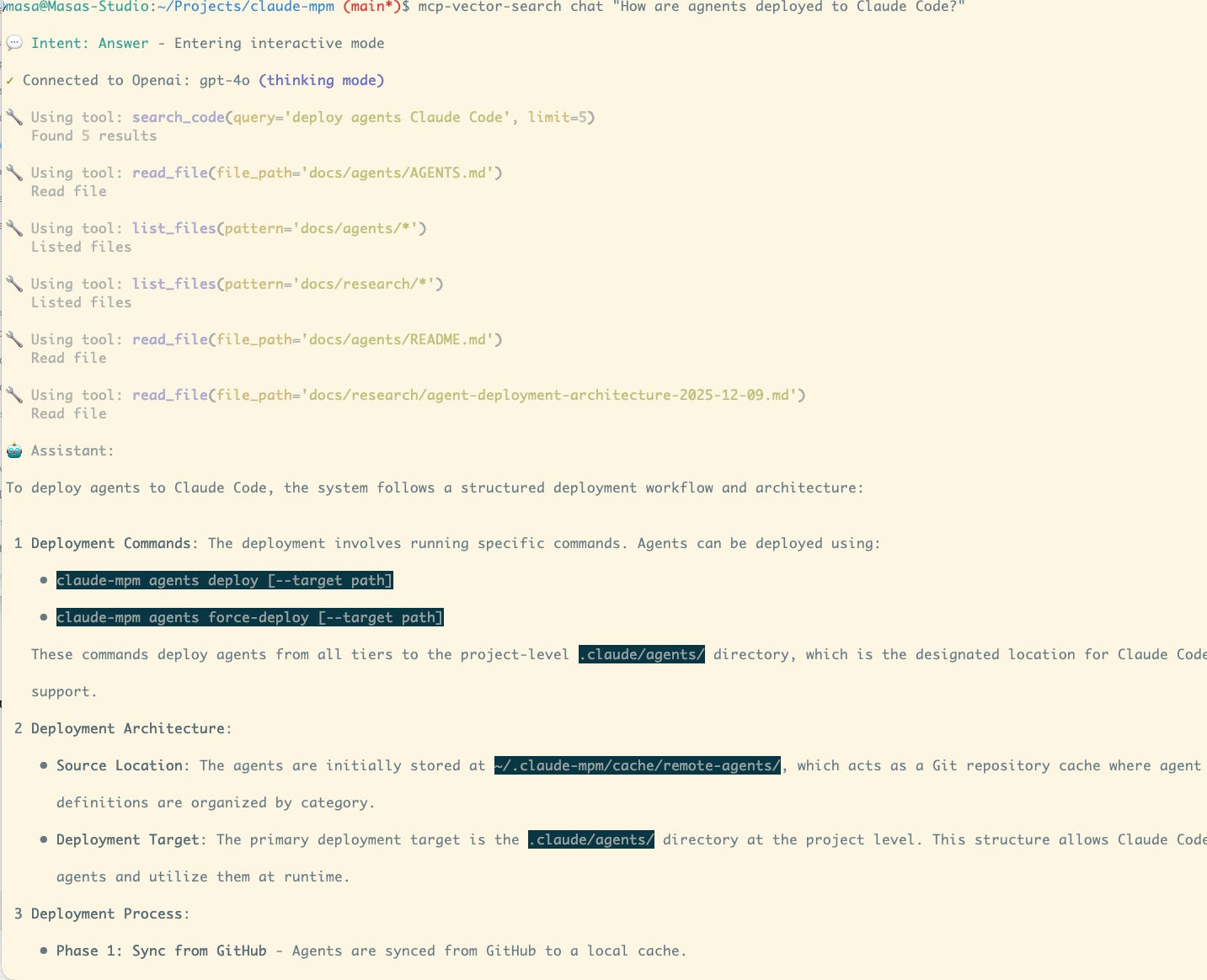 Give an LLM access to vector search tools and something interesting happens. Your codebase becomes answerable.