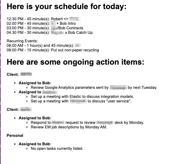 At work, I used to rely on an admin to provide daily summaries and task reminders. The admin, a few hours ahead in time, would send a structured update that helped me focus my day. Could I replicate this workflow using no-code tools and OpenAI’s platform?