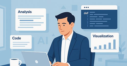 Why this works: AI can write Python/pandas code on the fly, clean messy data, generate visualizations, and explain findings in plain English. No need to set up complex analytics infrastructure for one-off questions.