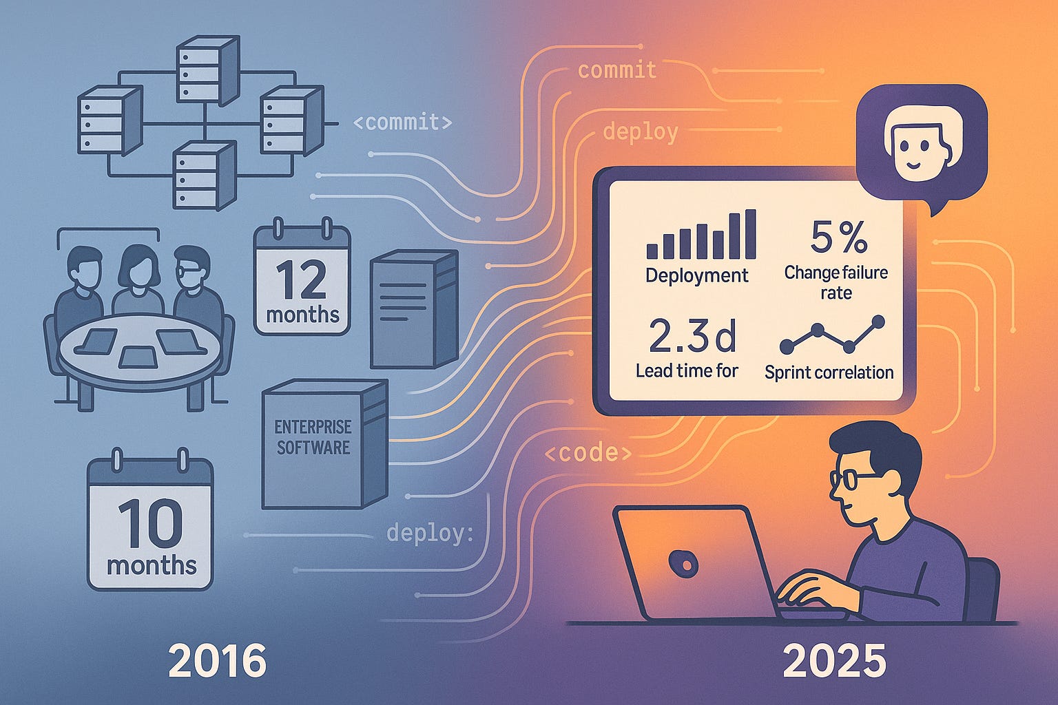 Back in 2016, the year Citymaps was acquired and I transitioned to Tripadvisor as Director of Engineering, I was working on a side project that consumed significant resources. We were building a SaaS service to track DORA metrics—developer productivity measurements that GitPrime dominated at the time.